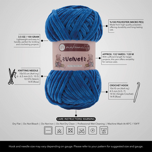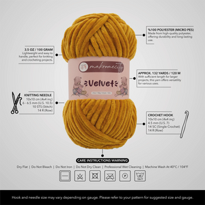• Premium Velvet Texture: Made from 100% polyester, this yarn offers an ultra-soft and shiny chenille finish that adds a luxurious touch to every project.