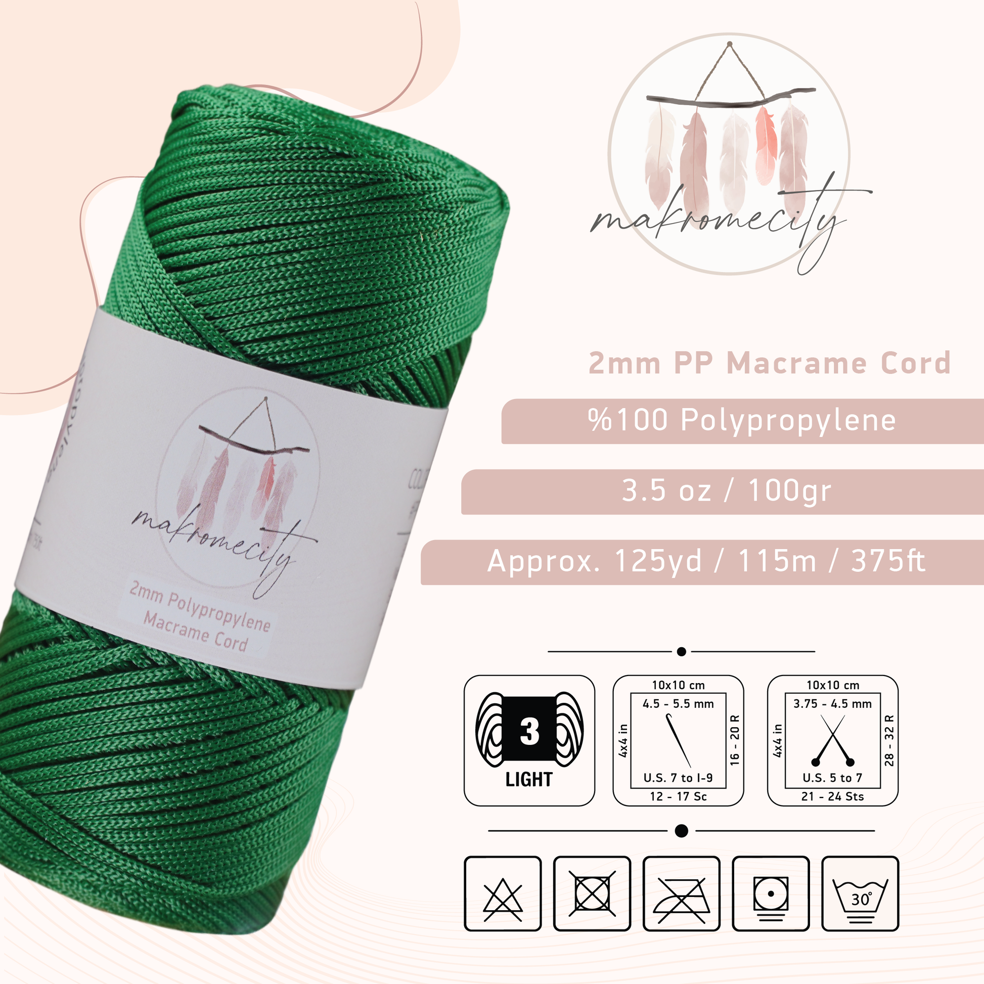 Makromecity 2mm Polyester Macrame Cord is a trusted brand in the macrame community, providing high quality cords designed to enhance the craft of all your macrame projects.