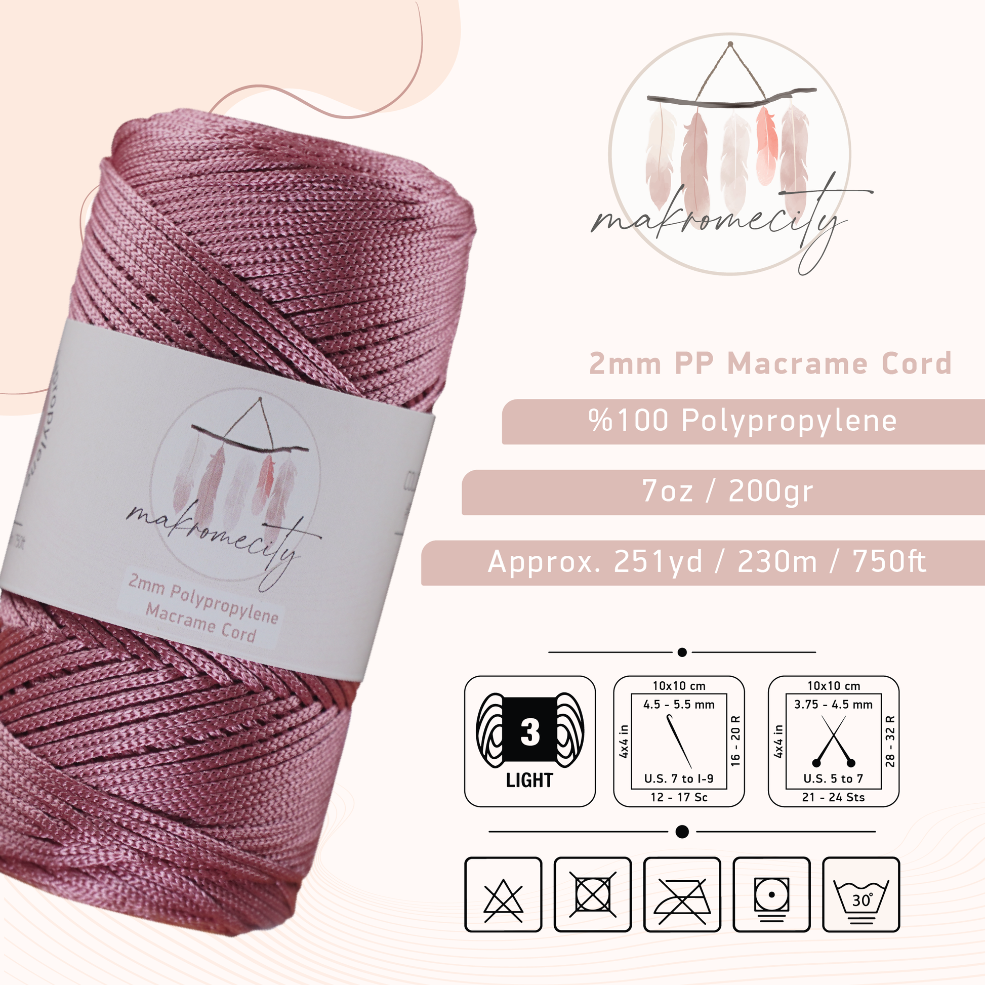 Makromecity 2mm Polyester Macrame Cord is a trusted brand in the macrame community, providing high quality cords designed to enhance the craft of all your macrame projects.