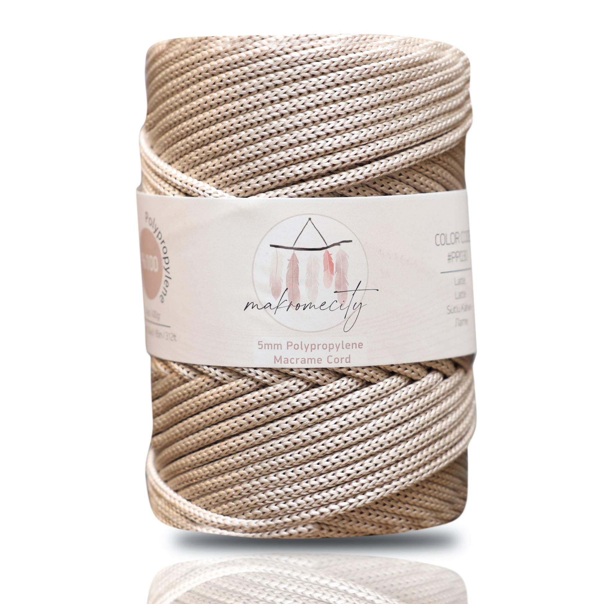Polyester Macrame Cord 5mm x 104 Yards (311 feet) Polypropylene - Latte